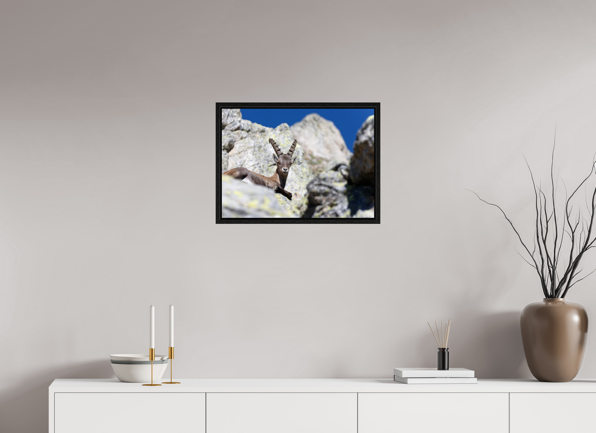 97,8 x 70 cm / Tirage photo sur papier brillant mis sous verre acrylique dans une caisse américaine / Photo print on glossy paper placed under acrylic glass in a floater frame 7-30637774-978000-700000